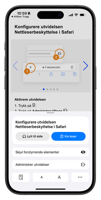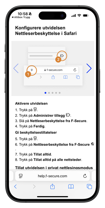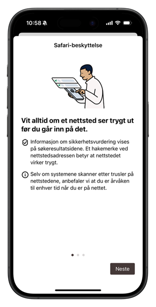 Denne tjenesten er tilgjengelig i Safari for IOS-brukere og i Chrome for Android-brukere. Merk at hvis du for eksempel bruker Google Chrome som nettleser på dine iphone, så vil ikke Nettleserbeskyttelse kunne benyttes.