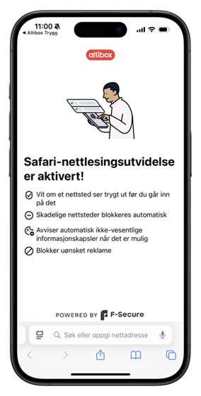 Du har nå aktivert Nettleserbeskyttelse-tjenesten i Altibox Trygg.