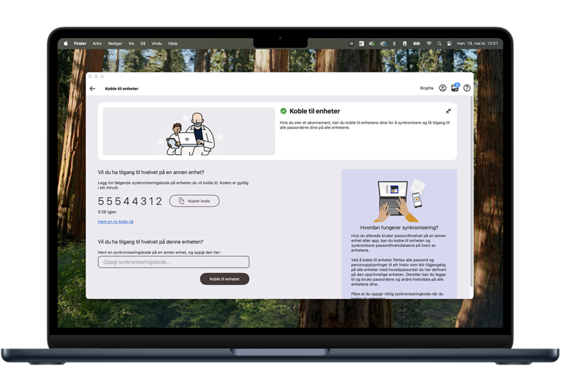 Denne artikkelen er ment for deg som allerede har satt opp passordhvelvet i Altibox Trygg på en av dine enheter, men nå ønsker å synkronisere mot en av dine andre enheter også.