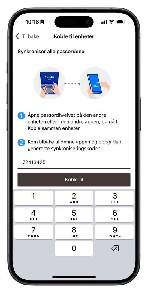 Koble til enheter – Synkroniser alle passordene.