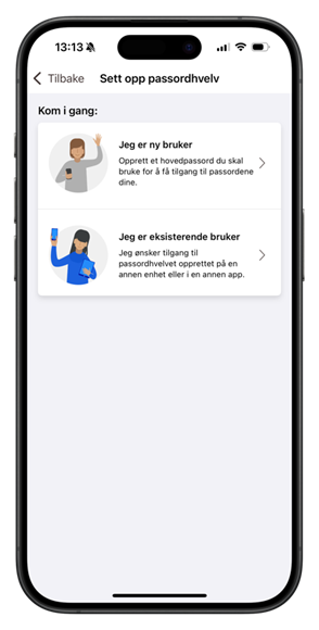 Trykk på kom i gang fra forsiden eller skroll ned til «Passordhvelv» og trykk på menypunktet her.